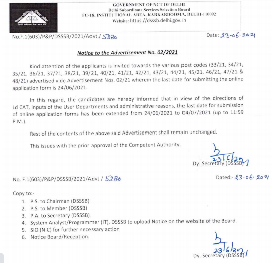 DSSSB TGT Recruitment 2021: The last date to apply for the DSSSB Group B, C Openings 2021 has been extended till 4th July 2021 for an advt 02/2021.