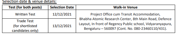 • The candidates have to qualify in Written Test & Trade Test and the weightage is 40% & 60% respectively. There shall be no interview.