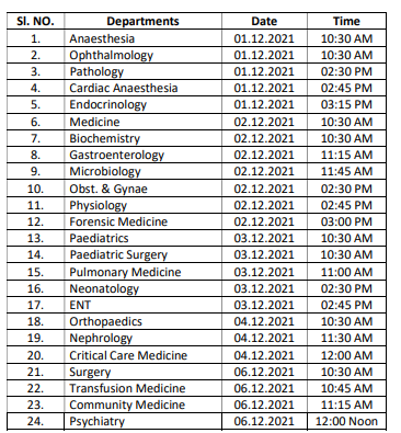 | Walk-in Dates | 1st December 2021 to 6th December 2021 |