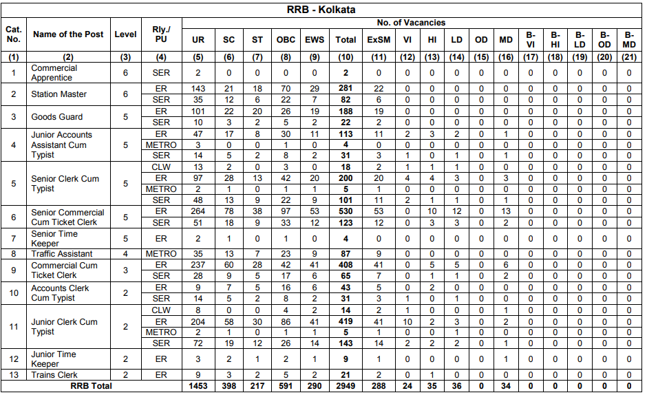 • Check, Age Relaxation  for reserved candidates refer to the RRB Kolkata NTPC Notification