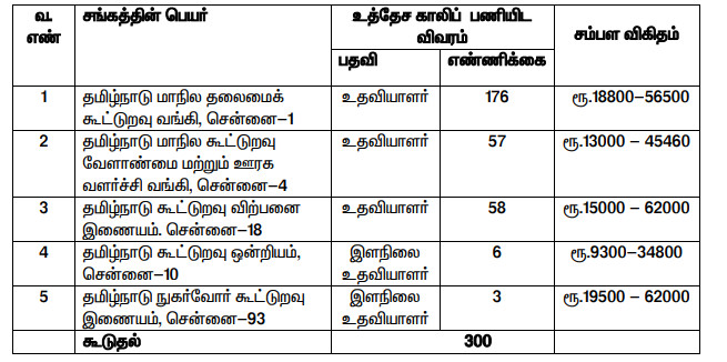 - Officials of Tamil Nadu State Apex Cooperative Bank will conduct the written examination for the Assistant posts.